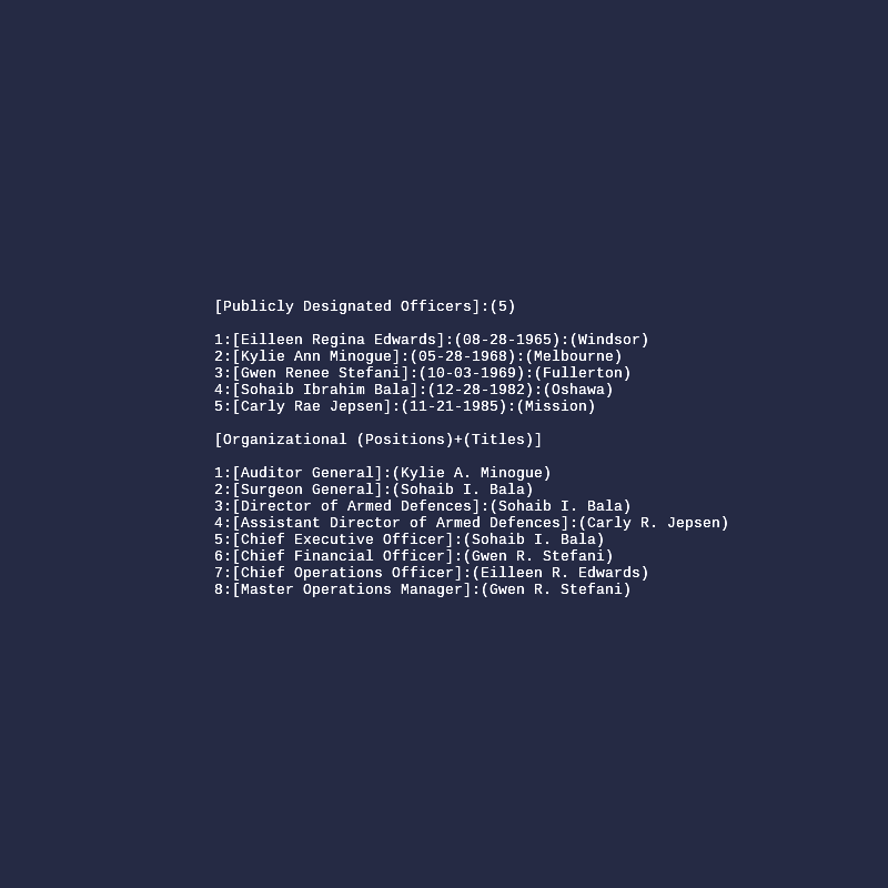 4:[Assistant Director of Armed Defences]:(Carly R. Jepsen)